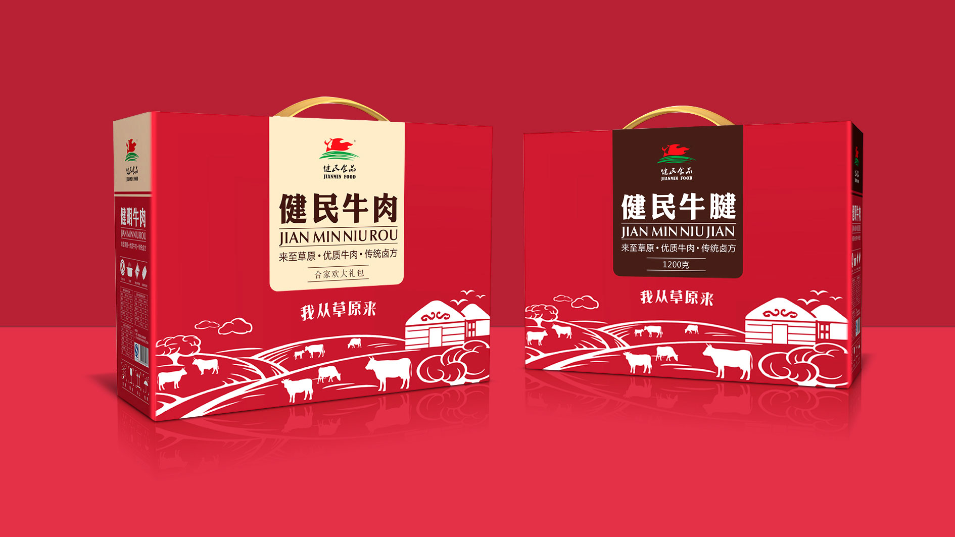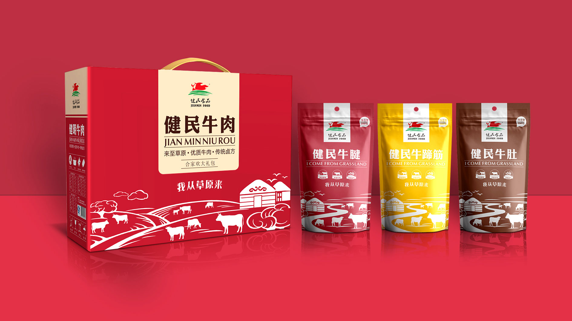 信立浩達廣告一直以來關注農產品品牌的包裝設計,認為要用文化創意的思想去挖掘產品的文化內涵,用品牌價值去占領消費者的心智,從而贏得消費者,贏得市場!我們為河南健民牛肉做的春節禮盒包裝設計,就是將中國傳統文化中的《五牛圖》創造性地設計在產品包裝上,得到了客戶的認可。讓企業從過去的賣產品轉為賣文化!