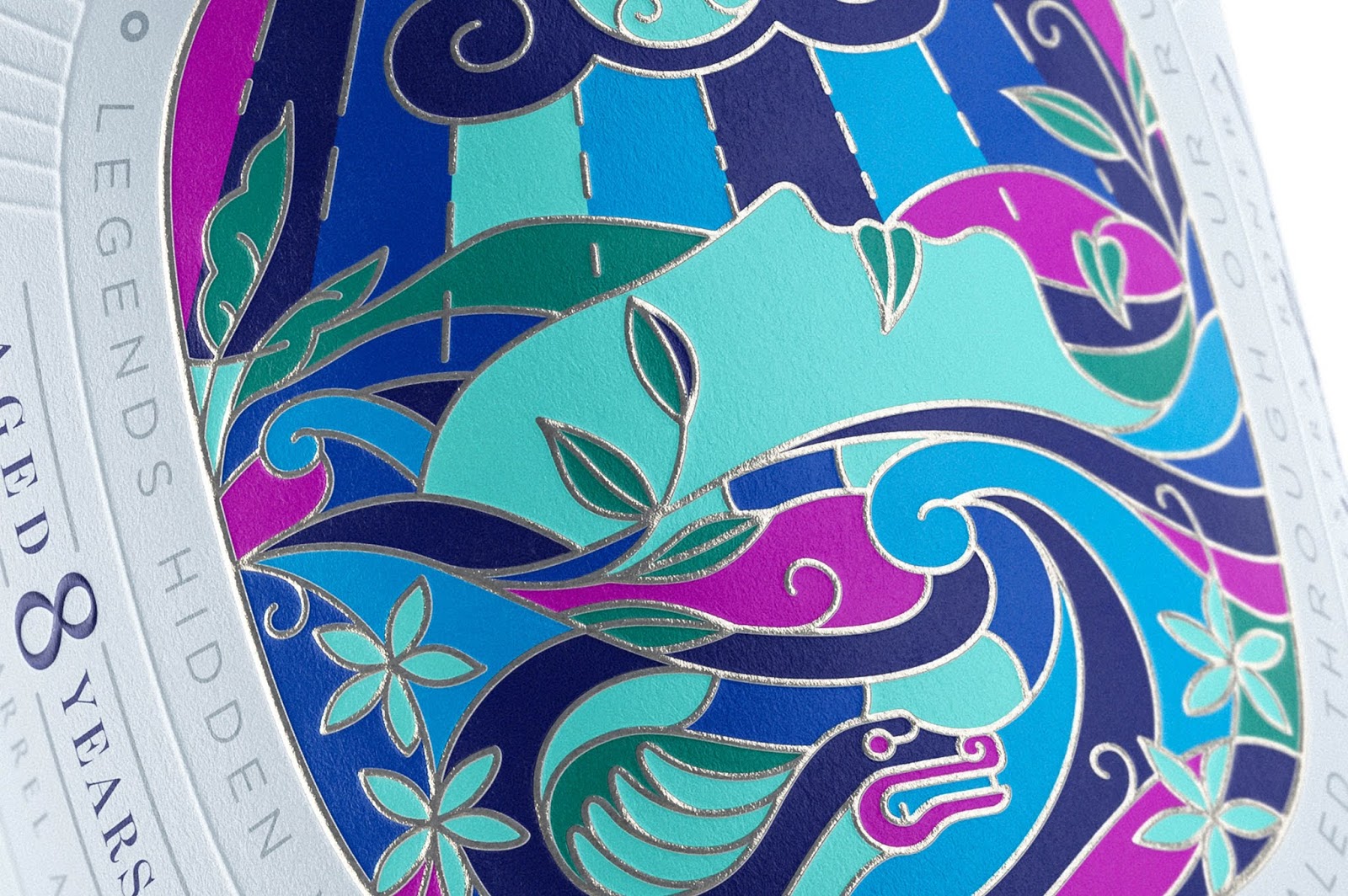 Cihuatan是一個來自薩爾瓦多的特制朗姆酒品牌。在納瓦特方言中,“Cihuatán”的意思是“女神熟睡的土地”。通過插圖刻畫鮮花綻放過程中的力量和美麗,通過女神睡顏表達女神的繁衍生息的力量。在工藝上“女神”的輪廓運用燙銀和凸紋的技術(shù),讓畫面有了些許立體感,增強畫面層次。色彩上,采用當?shù)靥赜械呐屠渖钆浞绞剑屛幕姆柛由钊肴诵摹?/span>