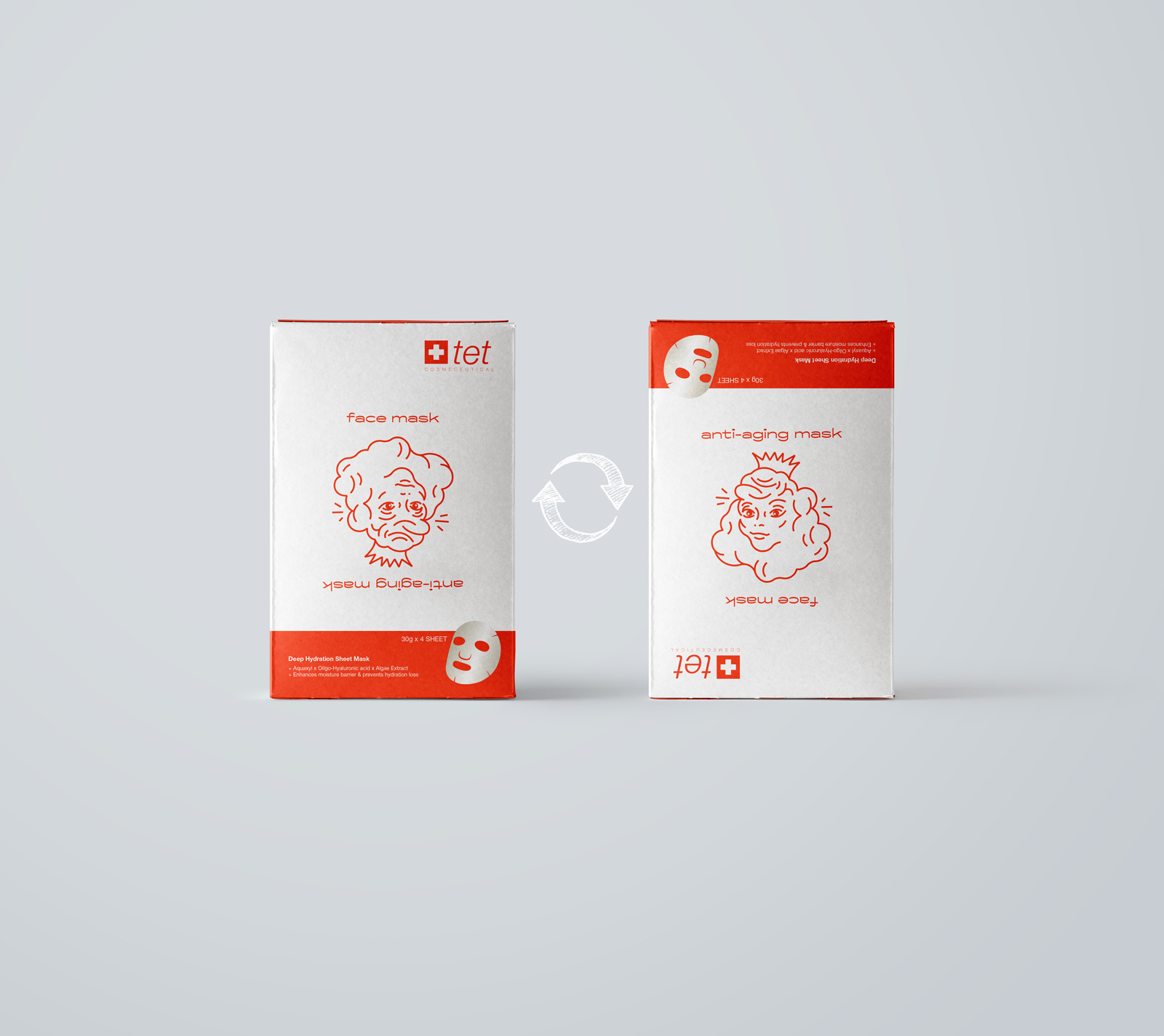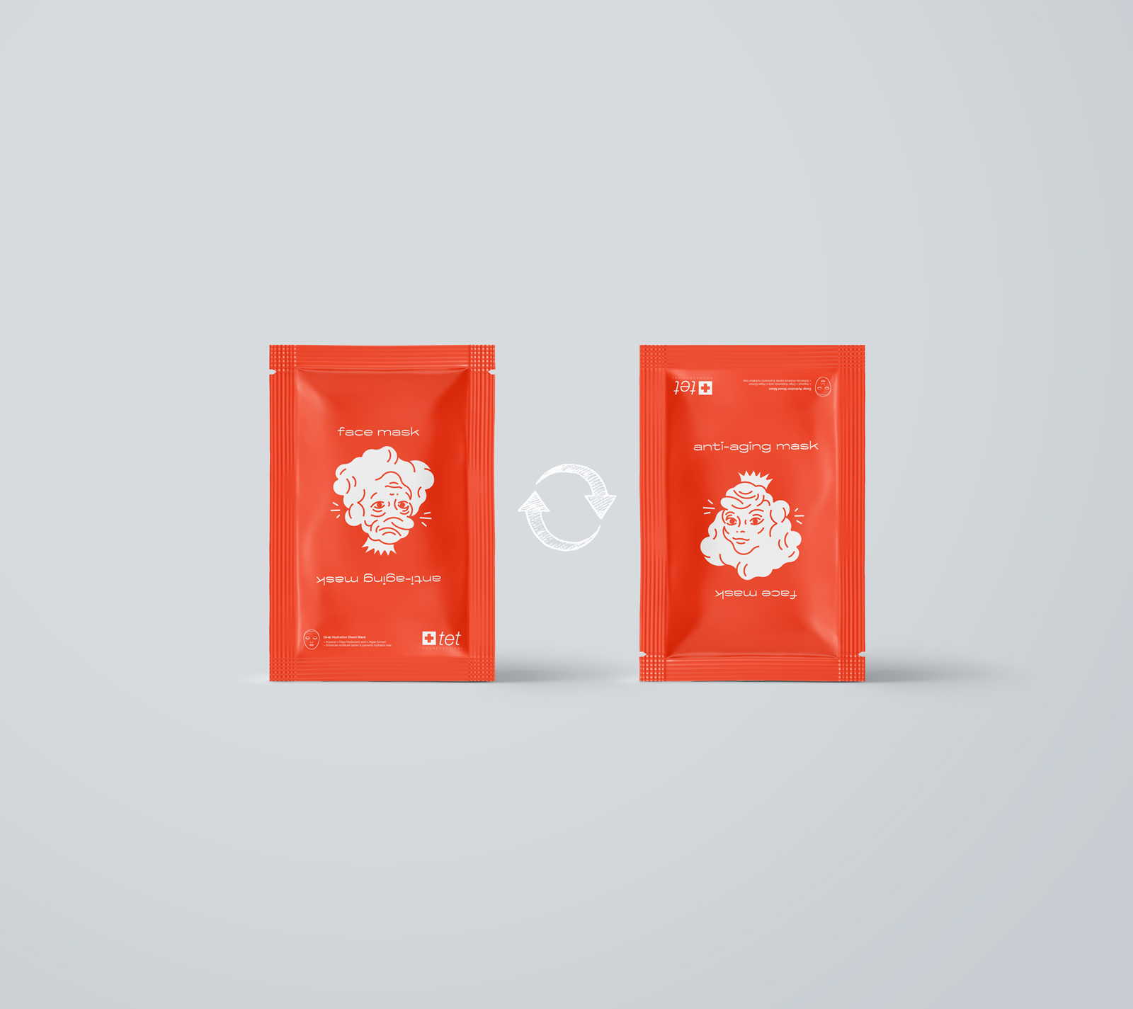 Anti-aging是一款抗衰老面膜,采用幽默風趣的表達手法將產品的特點清晰展現出來,將包裝的口袋翻轉過來,立刻把一個皺巴巴的老太太變成了一個年輕漂亮的女人,趣味性十足,抓住了人對有趣事物充滿好奇的心理。